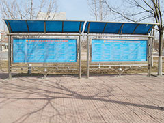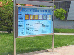 宣傳欄是一種VI應(yīng)用,是組織或企業(yè)單位等進(jìn)行自我宣傳的有效手段,常被應(yīng)用于街道,工廠,酒店等公共場(chǎng)所;一般采用不銹鋼為框架,鋼化玻璃或者耐力板為面板,鋁合金為頂棚,面板可以打開更換宣傳畫面。